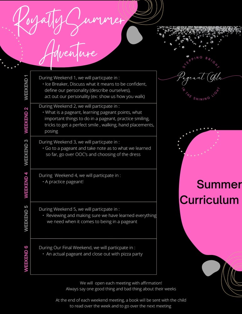 Our new summer program captures the essence of what it's like to be a Pageant Grl without fully committing to being a Pageant Grl! With 5 biweekly meetings, Pageant Grls break down the lifestyle of Pageantry, while allowing our Grls to participate in an actual pageant towards the end of the program!